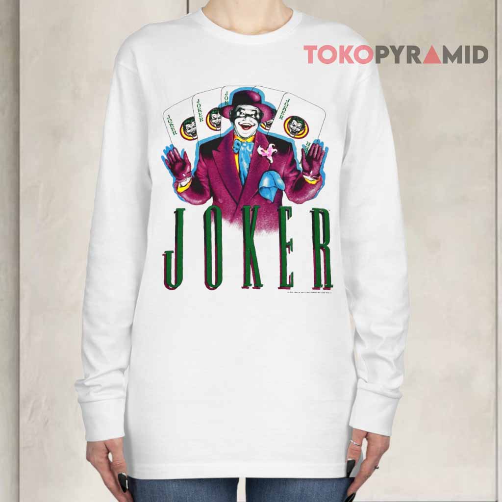 Celebrate one of the most iconic villains in movie history with the Vintage 1989 The Joker Batman Jack Nicholson Shirt, a bold tribute to a legendary performance that defined a generation of superhero cinema. This shirt features a striking image of The Joker portrayed by Jack Nicholson, surrounded by playing cards that reflect the character’s chaotic and unforgettable personality. The prominent “Joker” text beneath the artwork adds a dramatic finishing touch, instantly capturing the dark, stylish mood of the 1989 Batman film.