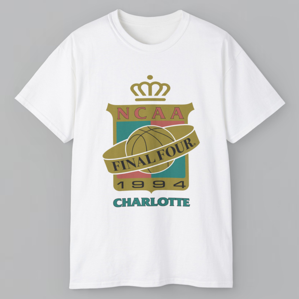 The Vintage 1994 NCAA Final Four Charlotte T-Shirt celebrates a historic moment in college basketball, featuring the iconic 1994 NCAA Final Four logo with “Charlotte” displayed proudly below. This design instantly connects fans to one of the most memorable championship events of the era, when passion, competition, and school spirit filled the arena. Its clean, recognizable graphic makes it a timeless piece for those who appreciate classic NCAA history and vintage sports culture.