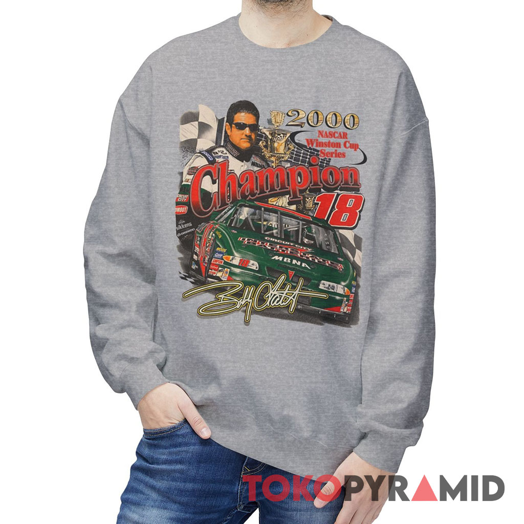 The year 2000 marked a monumental chapter in Bobby Labonte’s journey, as he soared to the pinnacle of success by clinching the highly coveted NASCAR Winston Cup Series Champion title. This 2000 Bobby Labonte Nascar T-shirt encapsulates that momentous achievement in a design that speaks volumes. At the forefront, an image of Bobby Labonte is captured, holding the championship cup with a triumphant grin, embodying the culmination of years of dedication and hard work.