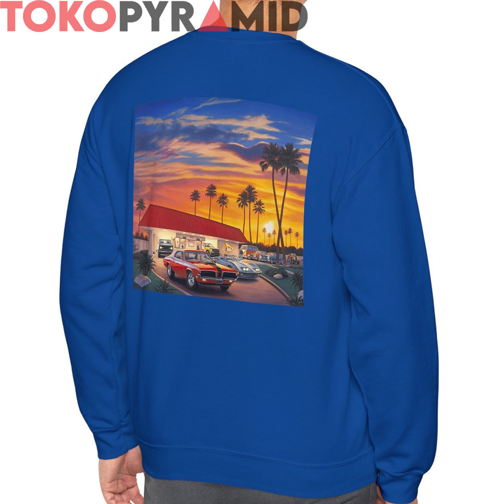The Vintage 2022 In N Out Burger Golden Hour Shirt captures that fleeting California moment when the sky burns gold and palm trees cast long shadows over the pavement. The shirt’s print showcases a dreamy drive-in scene: classic muscle cars lined up outside a glowing In N Out Burger, while the sun dips below the horizon in warm hues of orange, pink, and indigo.
