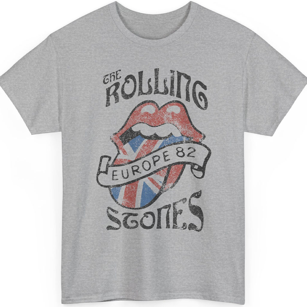 Adding an extra layer of historical significance, the tongue is adorned with the American flag, symbolizing the band’s international influence and the global reach of their music. But it’s the banner proudly displaying “EUROPE 82” that truly makes this shirt stand out. It’s a nod to The Rolling Stones’ 1982 European tour, a time when their music filled arenas, transcending borders and cultures.