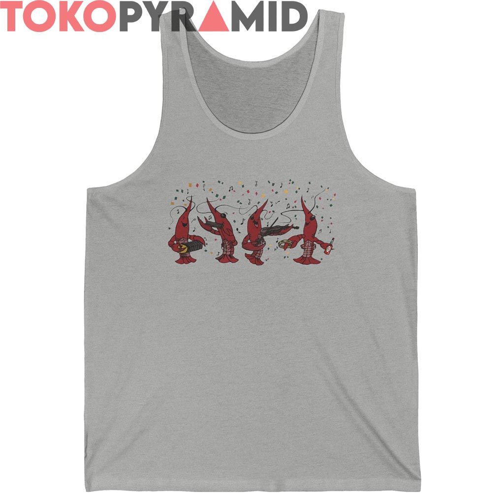 90s Tabasco Shrimps Playing Music Shirt – Spicy Swingin’ Crawfish Party with Retro Flavor