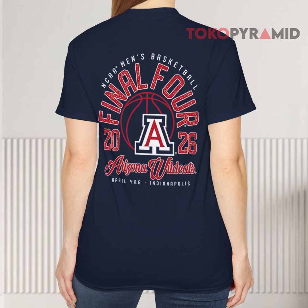 The Arizona Wildcats 2026 NCAA Men’s Basketball Tournament March Madness Final Four Shirt is the ultimate way to celebrate a historic journey to the Final Four. Featuring a bold front design with a basketball graphic, the official Final Four logo, and Arizona Wildcats branding, this shirt captures the energy and excitement of March Madness. The back design adds even more impact with another basketball graphic, Arizona Wildcats logo, and “2026 Final Four” text, making it a complete tribute to an unforgettable season.