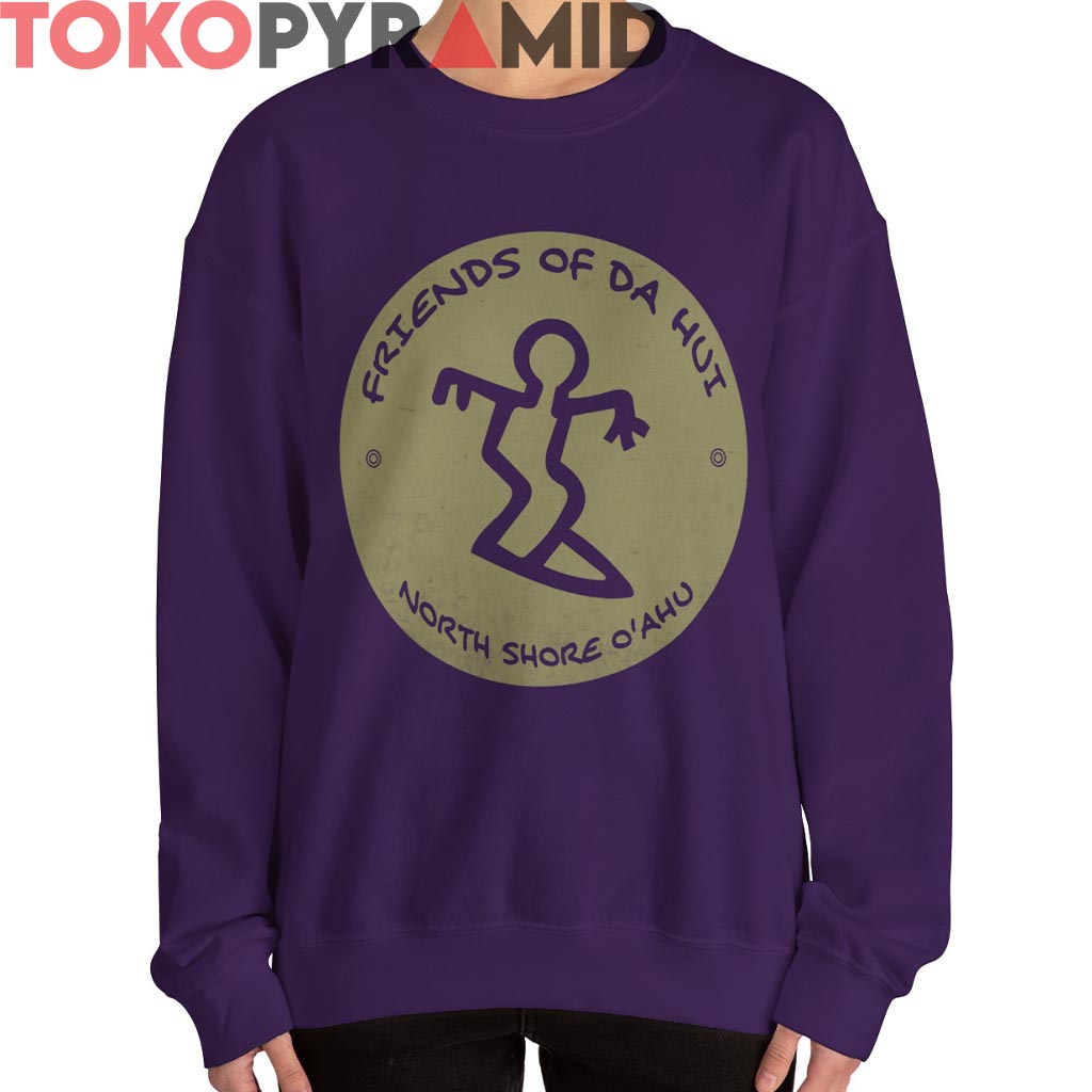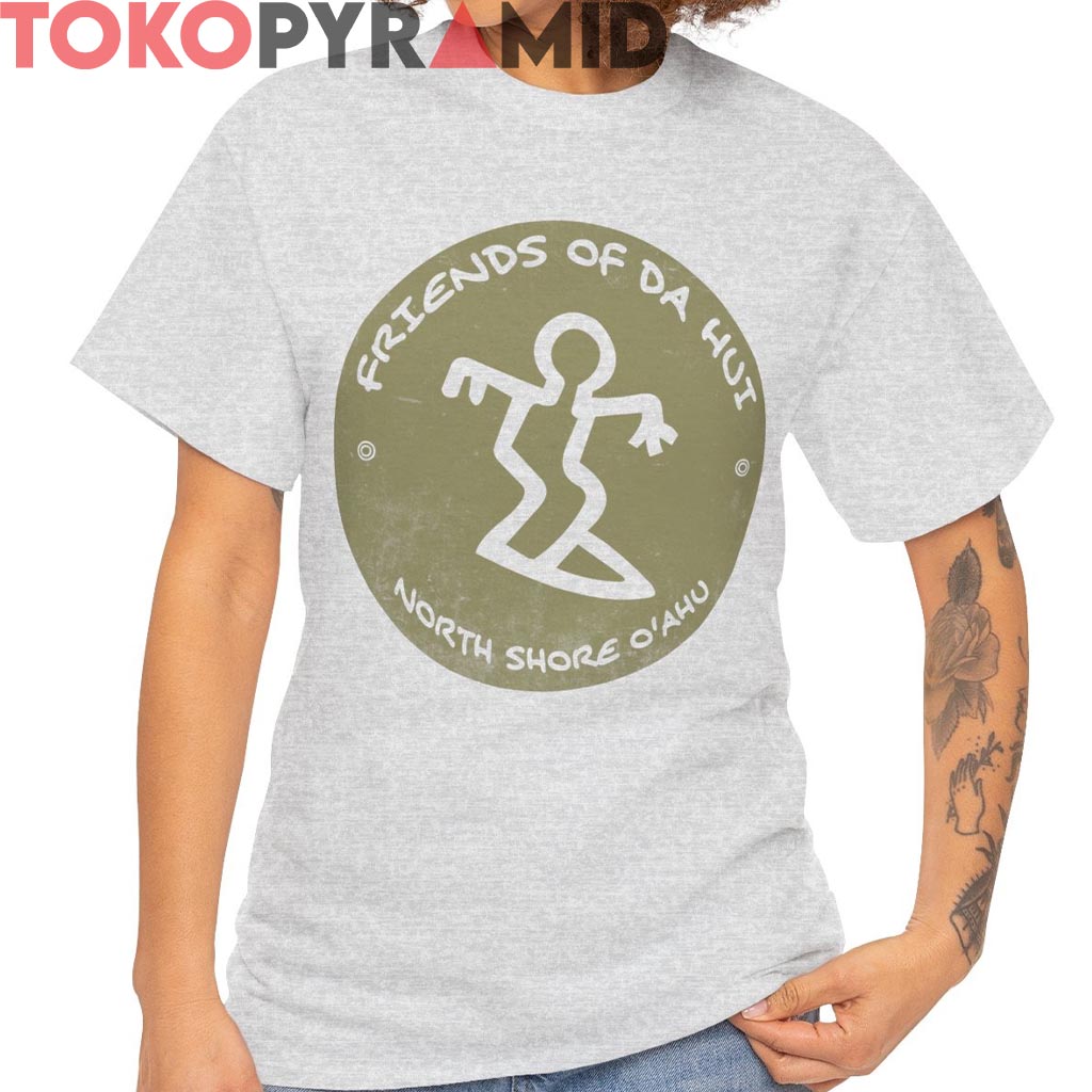Ride the waves of Hawaiian surf culture with this iconic Friends of Da Hui Surf Shirt. Featuring a bold circular design with tribal-inspired surfer artwork in the center, this shirt pays homage to the roots of North Shore surfing and the legendary community behind it. The words “Friends of Da Hui” wrap around the top, while “North Shore Oʻahu” anchors the bottom—instantly evoking the spirit of one of the most revered surf regions in the world.