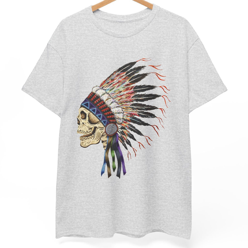 The centerpiece of this shirt is none other than the Indian Skull, a distinctive and evocative image that graced the cover of the Grateful Dead’s Spring 1990 album. This artwork, known for its intricate details and powerful symbolism, captures the essence of the band’s connection to various cultural influences. The Indian Skull is a blend of Native American imagery and psychedelic aesthetics, embodying the counter-culture spirit that defined the Grateful Dead.
