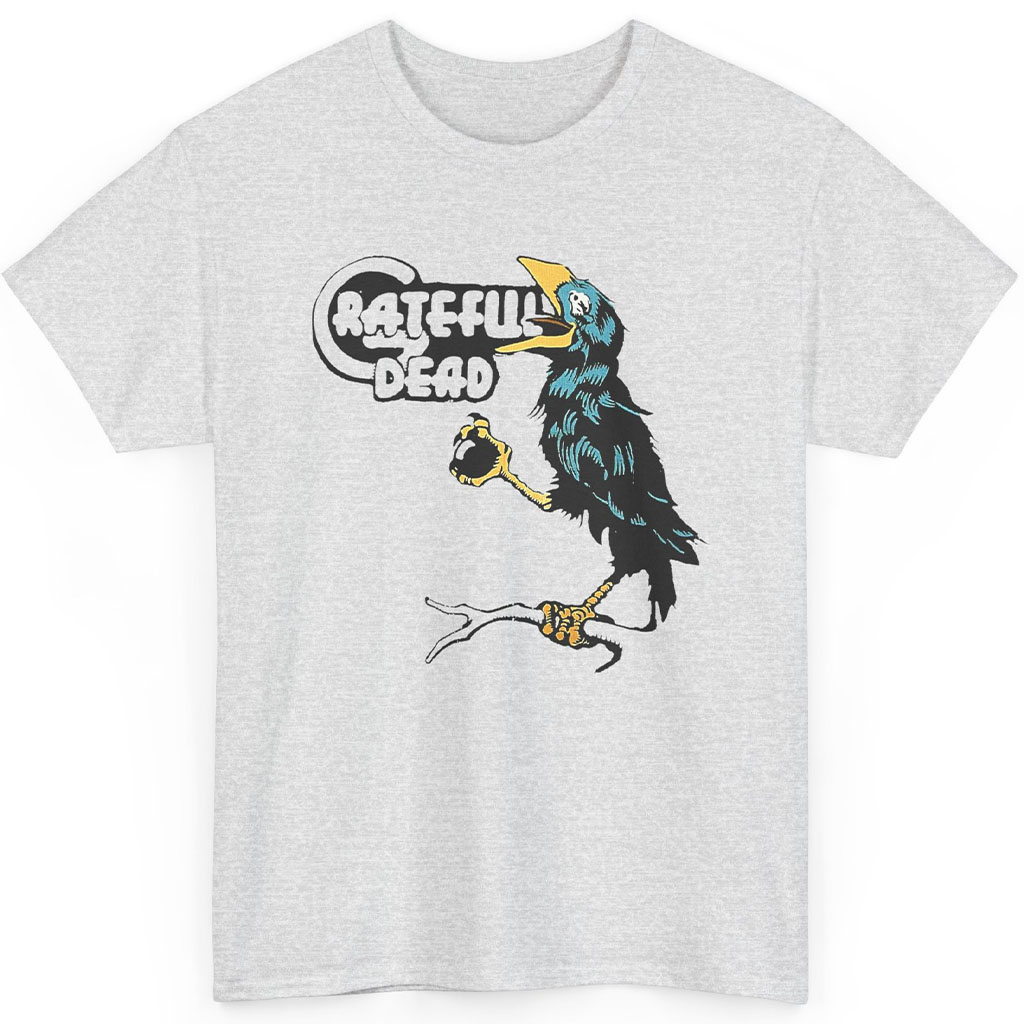 Rick Griffin’s artistic brilliance shines through in every stroke of the crow’s feathers and the meticulous attention to detail in the overall composition. This shirt allows you to wear a piece of both musical and artistic history, celebrating not only the Grateful Dead’s musical legacy but also the visual narratives that have accompanied their albums over the years.