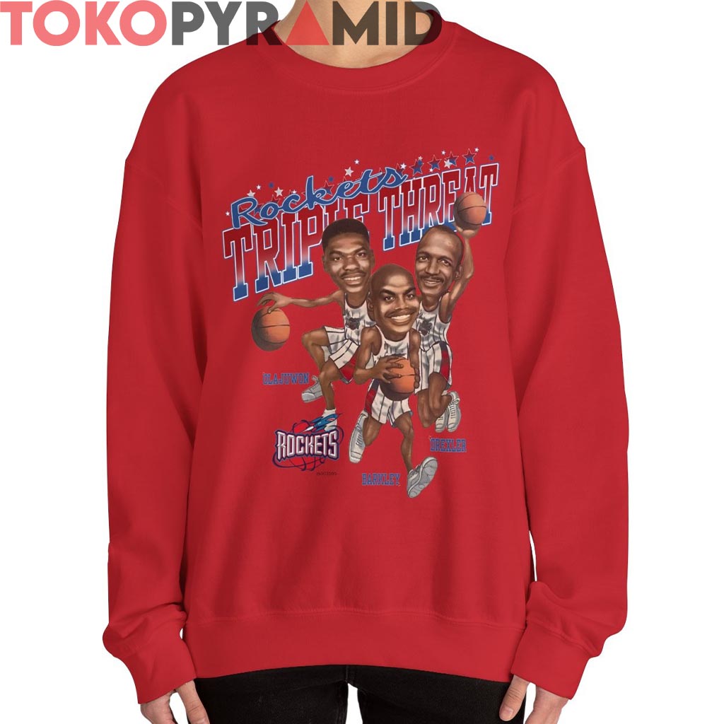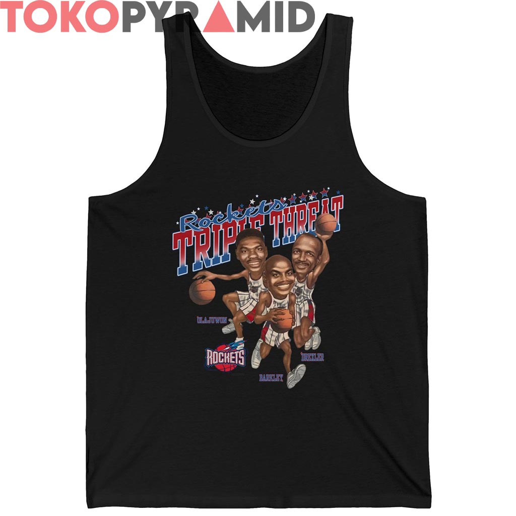 Have a look at the detailed information about Vintage Houston Rockets Triple Threat Shirt below!