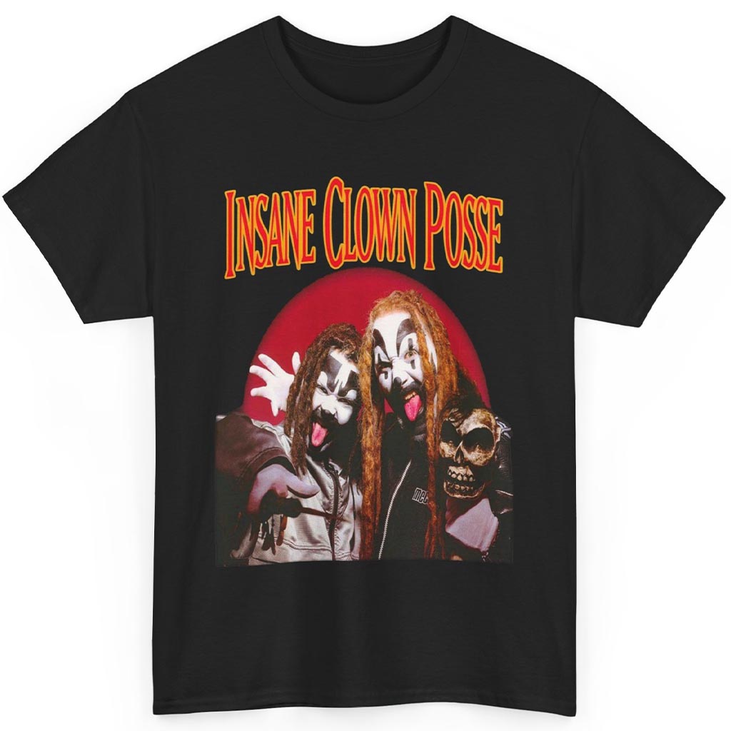 The Insane Clown Posse Wicked Clowns Shirt is a bold, high-energy throwback to the raw chaos of Juggalo culture in its prime. Dominating the front is an electrifying image of Violent J và Shaggy 2 Dope—decked out in their signature black-and-white face paint, tongues out, throwing signs, and exuding pure underground menace. Behind them, a deep red half-moon glow sets the scene like a back-alley ritual under crimson skies. To their side, a creepy skull adds a macabre twist, because no ICP shirt is complete without a touch of horrorcore madness.