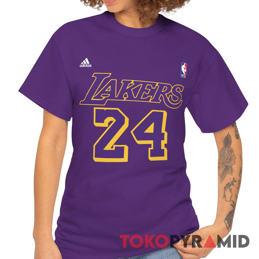 Introducing the iconic Los Angeles Lakers Adidas Kobe Bryant 24 T-shirt, a testament to the legendary basketball player and the esteemed NBA team! This extraordinary shirt showcases the revered number 24, proudly worn by Kobe Bryant, a name synonymous with greatness and excellence in the world of basketball.