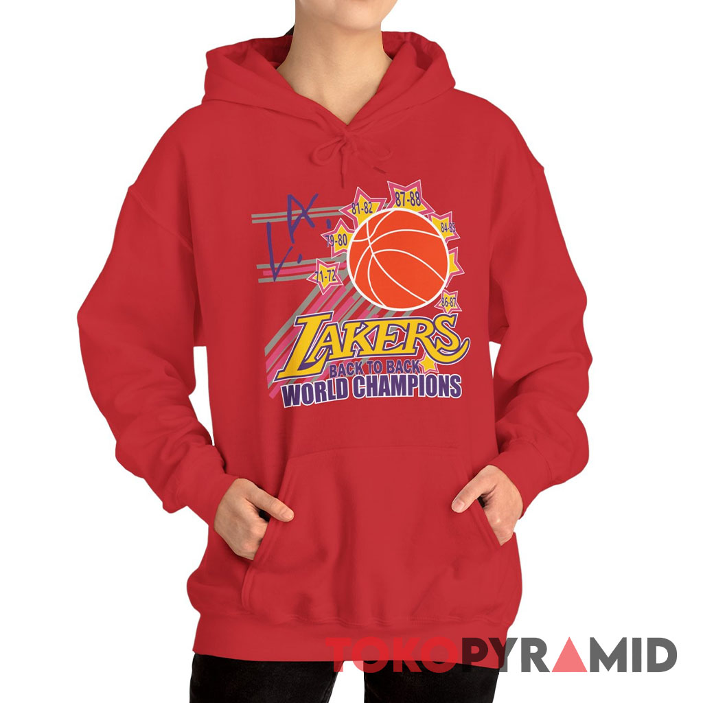 Whether you’re a passionate Lakers fan or a lover of vintage sports memorabilia, the Vintage 80s Los Angeles Lakers Back To Back World Champions Tee is a must-have addition to your collection. Celebrate the Lakers’ legacy of victory and immerse yourself in the glory of their back-to-back championships with this retro masterpiece.