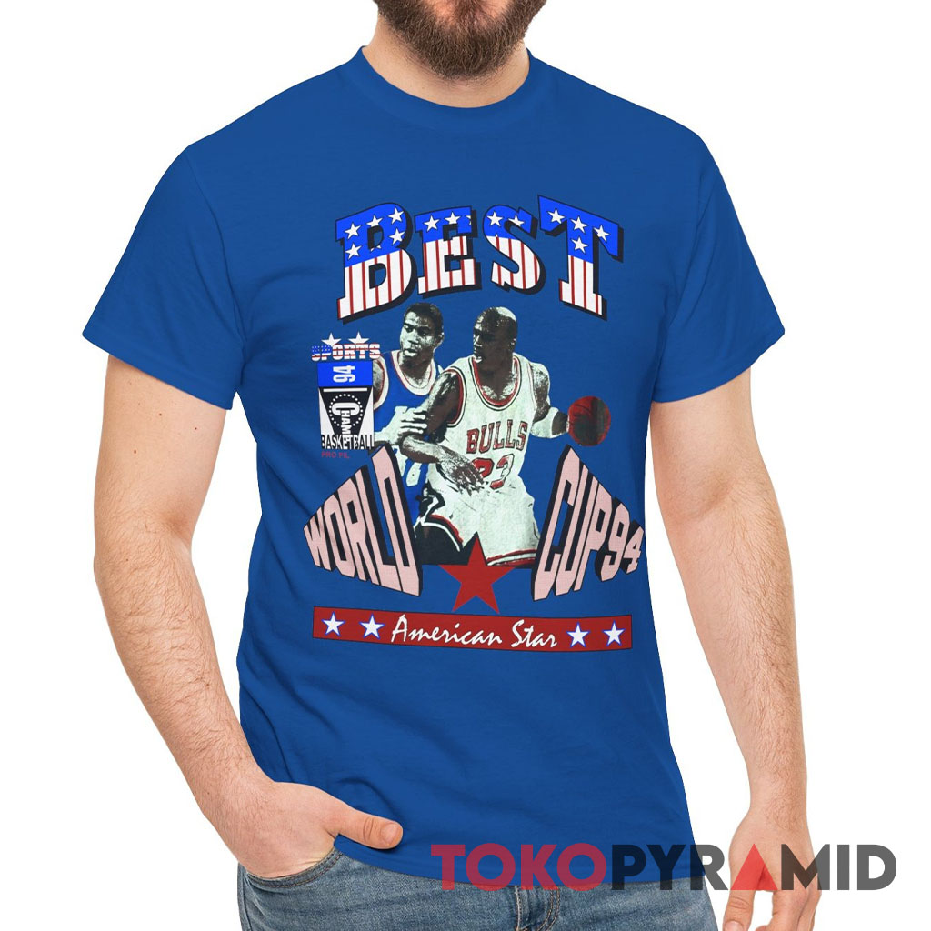 This vintage piece transports you back to the 90s, a golden era in basketball history when these two legends showcased their unparalleled skills and competitive spirit on the court. The tee serves as a visual tribute to their lasting impact on the game and their contributions to the USA Men’s National Basketball Team.