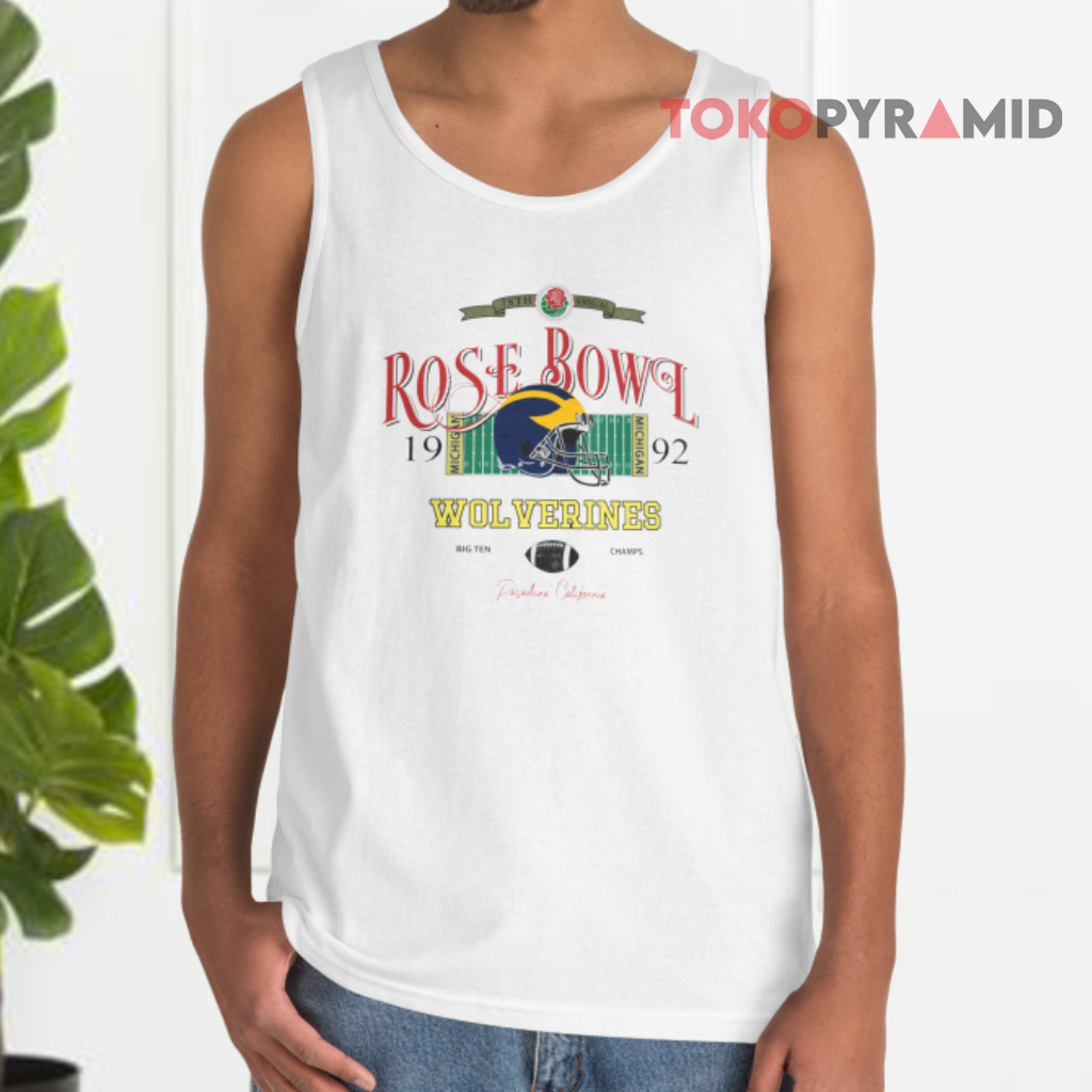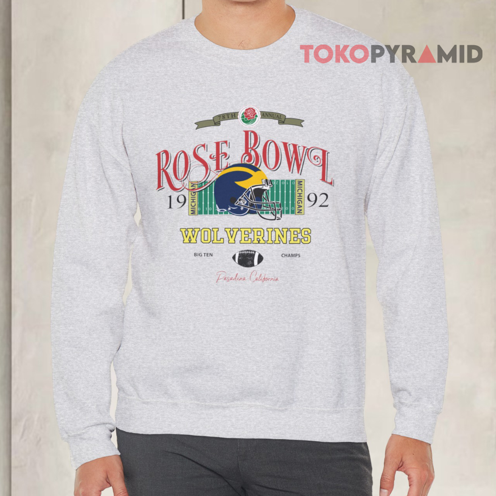 The Michigan Wolverines 1992 Rose Bowl Shirt captures a timeless moment in college football history with a bold and nostalgic design. At the center of the shirt, a classic football helmet sits proudly, symbolizing the strength and determination of the Michigan Wolverines. Surrounding it, the words Rose Bowl are prominently displayed, instantly recalling the excitement of one of the most iconic games in college football. This design element creates a direct link to the rich traditions of the Rose Bowl while celebrating Michigan’s remarkable season.