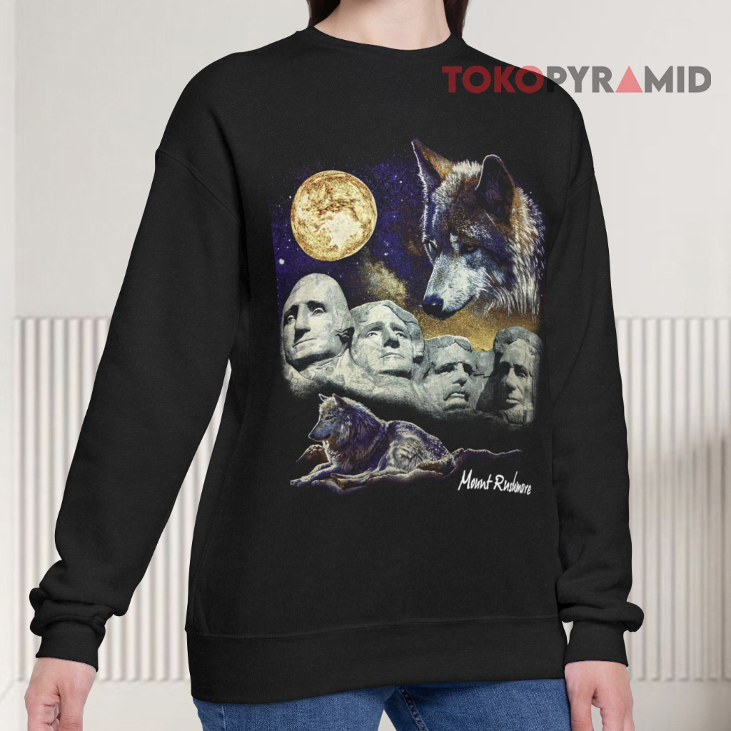 Vintage Mount Rushmore Wolf Moon Sky Glow In The Dark Sweatshirt