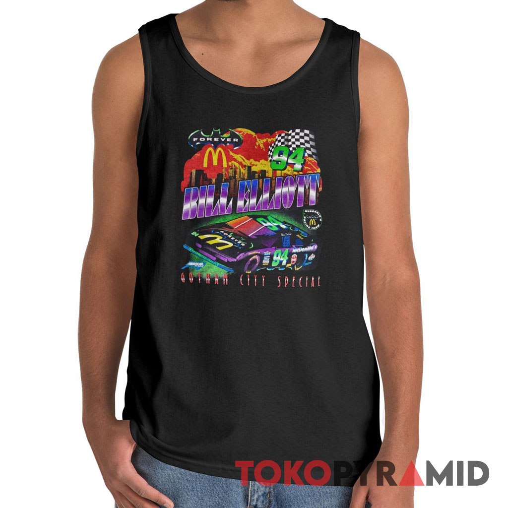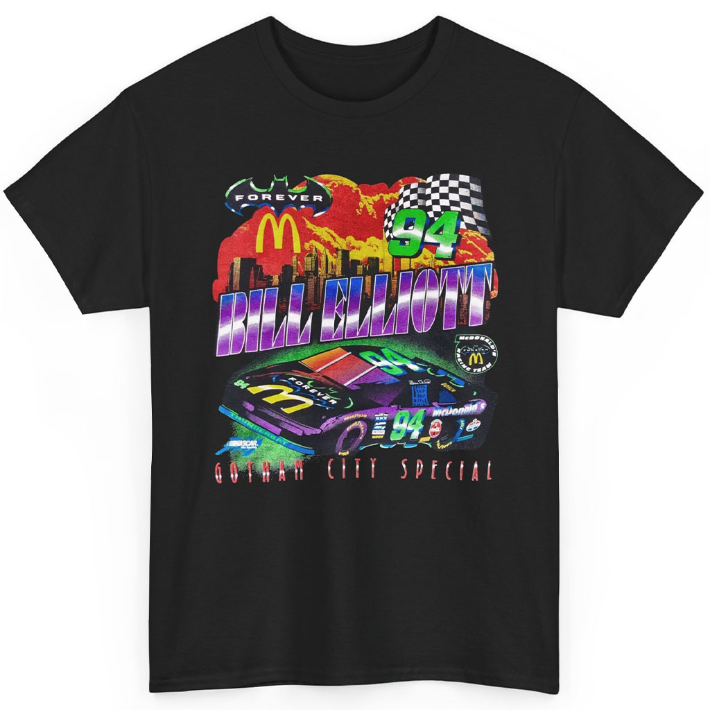 Introducing the Nascar 1995 Bill Elliott T-shirt Batman Forever Gotham City! This unique and captivating shirt commemorates a special event in the world of racing. In 1995, the renowned American racer, Bill Elliott, took part in the thrilling “Batman Forever Gotham City Special” – a one-of-a-kind racing event organized to promote the iconic film “Batman Forever”.