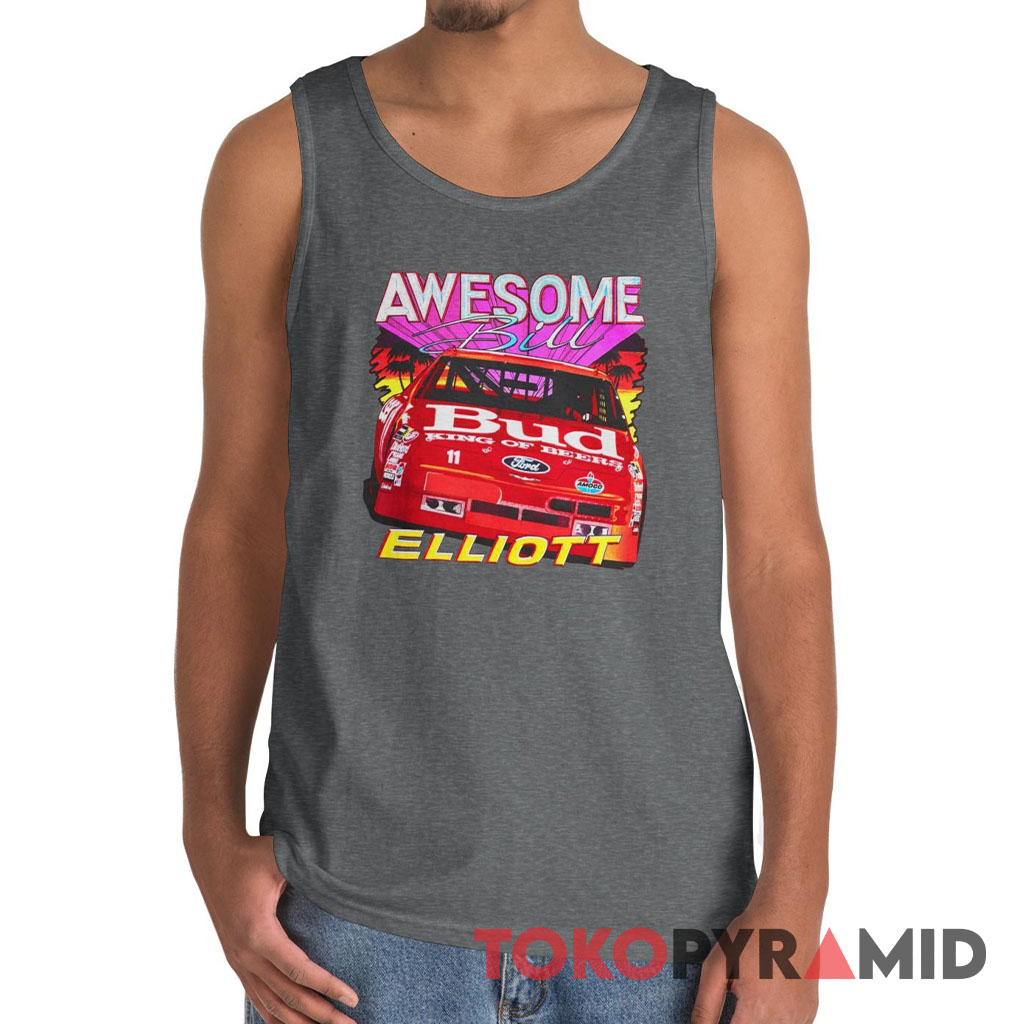 The Nascar Bill Elliott Budweiser T-shirt proudly showcases an image of Bill Elliott’s iconic racing machine, adorned with vibrant hues and the distinctive Budweiser logo. The word “Awesome” is boldly displayed, encapsulating the essence of Bill Elliott’s awe-inspiring feats. The name “Bill Elliott” is thoughtfully arranged, and harmoniously integrated into the design.