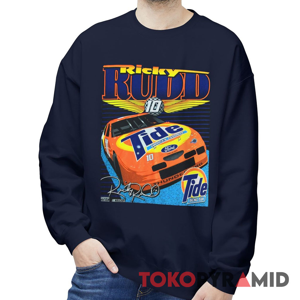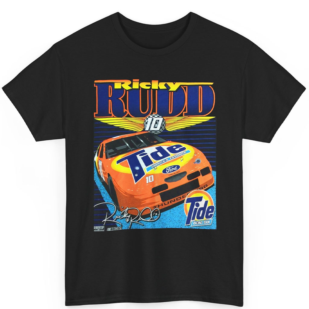 Ricky Rudd, an iconic American racecar driver, joins forces with Tide, a renowned sponsor, to create a synergy that roars across the tracks. This Nascar Ricky Rudd Tide T-shirt showcases the heart-pounding action with an image of Ricky Rudd’s unmistakable number 10 racecar, adorned with vibrant hues that symbolize Tide’s unwavering support. The signature of Ricky Rudd stands tall above, a testament to his prowess on the racing circuit. The design encapsulates the thrilling speed and the adrenaline-fueled moments that have become synonymous with Nascar racing.