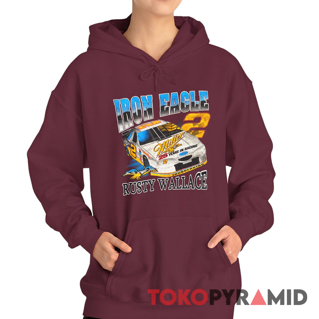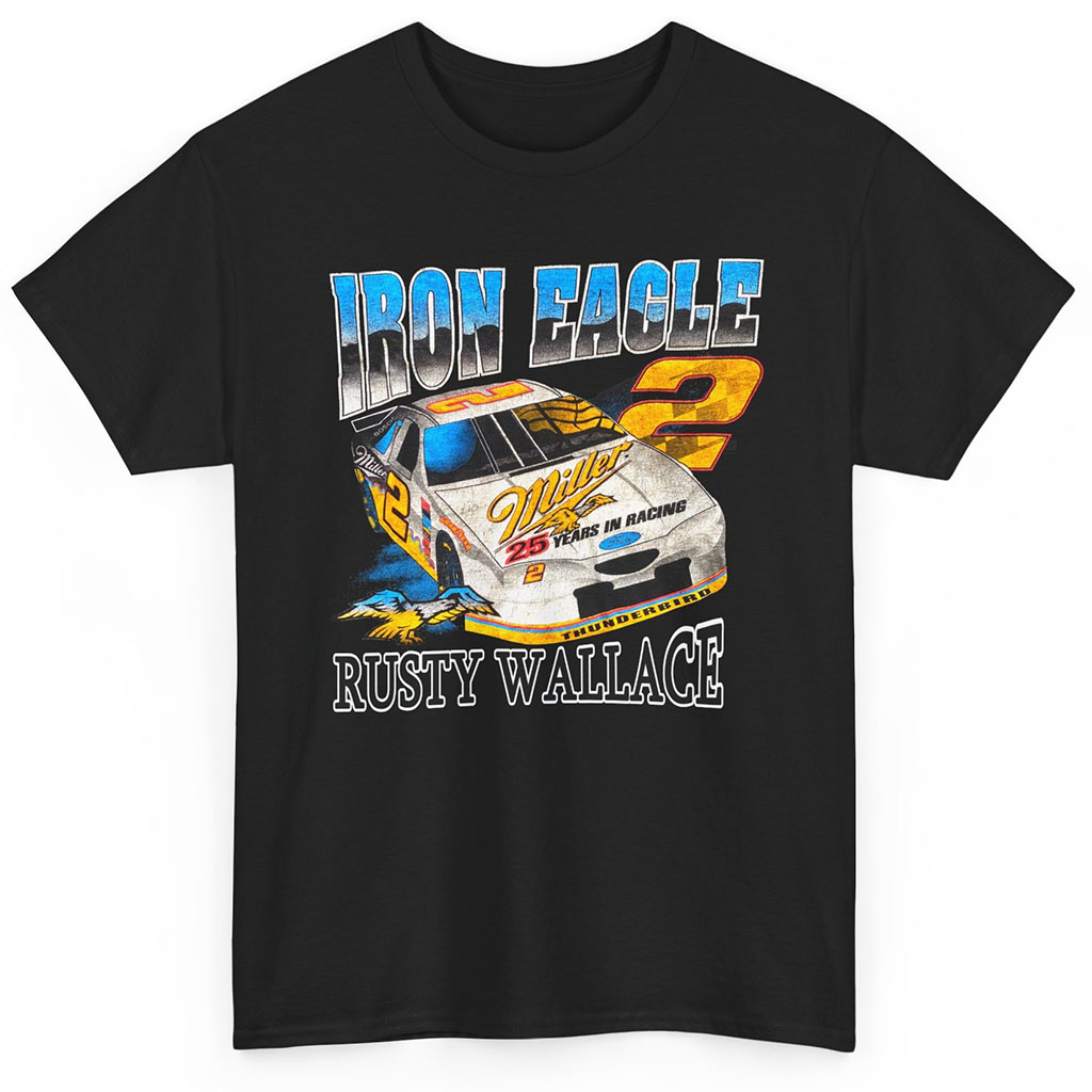 Incorporating a harmonious fusion of design elements, the Nascar Rusty Wallace Iron Eagle T-shirt encapsulates the spirit of racing, partnership, and individual excellence. It’s a wearable homage to a true racing legend, a piece of history that resonates with both devoted fans and enthusiasts of motorsports.