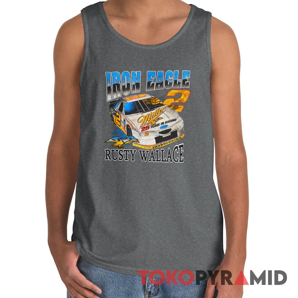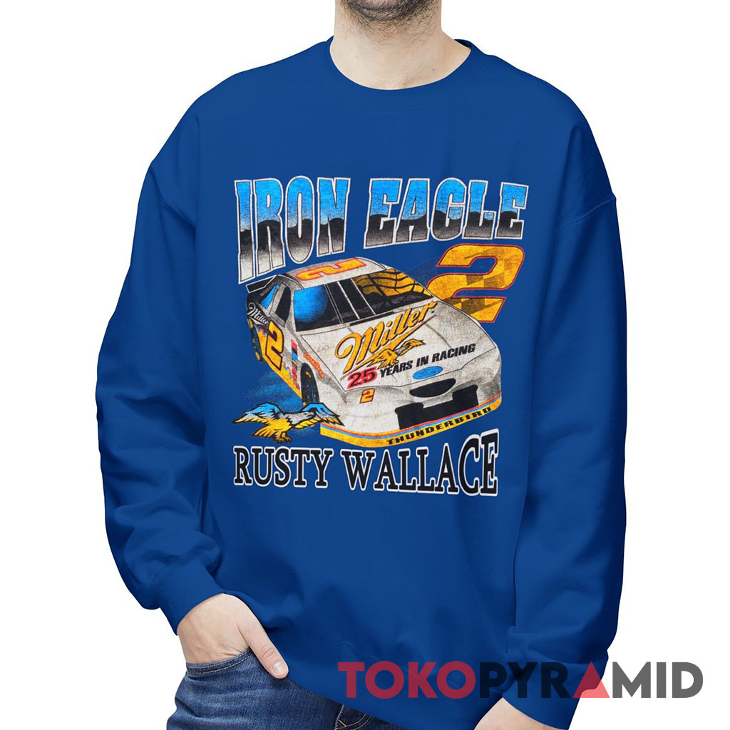This striking Nascar Rusty Wallace Iron Eagle T-shirt pays tribute to Rusty Wallace’s compelling career by embracing his moniker, “Iron Eagle”, a name that echoed across racetracks during his NASCAR journey. The emblematic “Iron Eagle” logo, representing the iconic Miller Lite sponsorship, adorns the fabric, a testament to the dynamic partnership that propelled him to greatness.