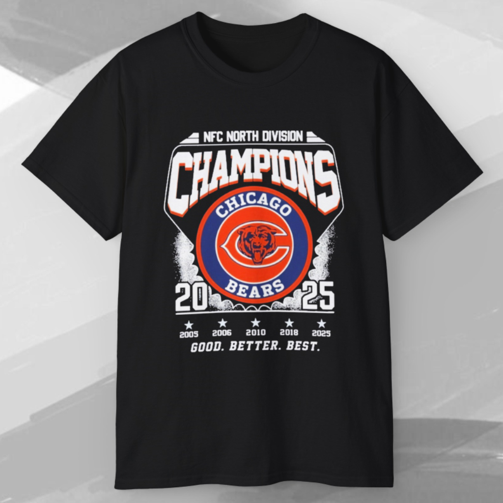 Have a look at the detailed information about Chicago Bears 2025 NFC North Division Champions Good Better Best Shirt below!