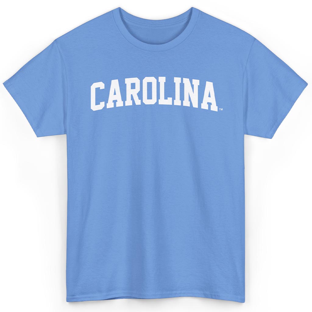 The North Carolina Tar Heels Basic Arch Shirt channels that unmistakable campus pride with an oversized “CAROLINA” printed in towering block letters, arched with classic varsity flair. It’s a design that feels like it stepped right out of a 1990s locker room—crisp, proud, and packed with history. No mascots, no gimmicks—just pure old-school university spirit.