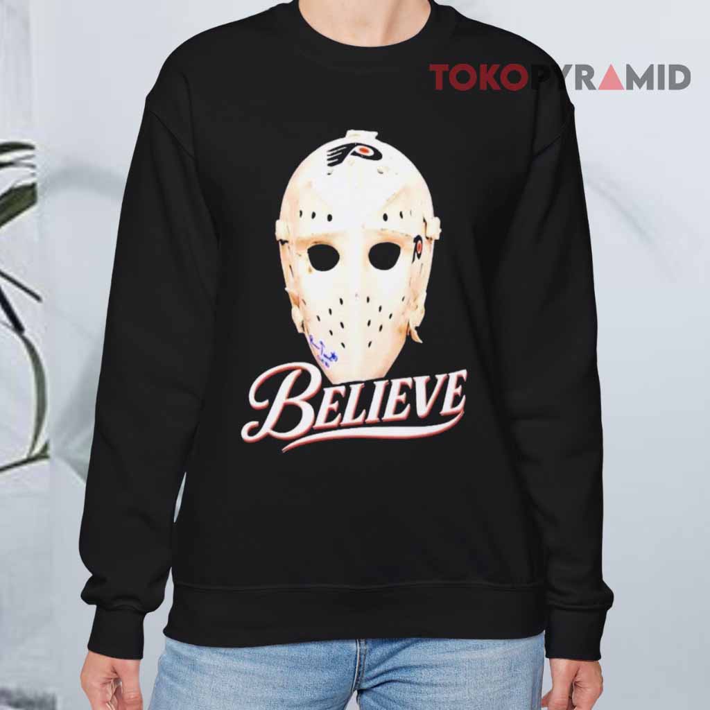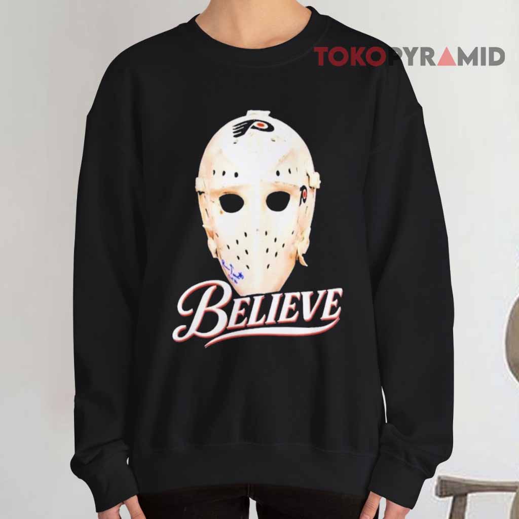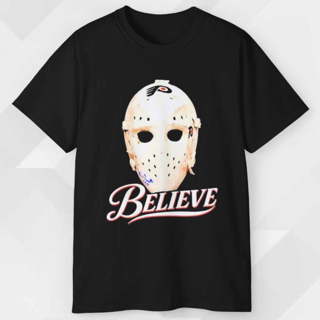 The Shirt is more than just fan apparel—it’s a statement of loyalty and belief. The mask symbolizes strength and protection, while the “Believe” message adds an emotional connection that resonates with true supporters. Whether you’re heading to a game, watching with friends, or styling it for everyday wear, this shirt delivers a strong and memorable look that reflects your dedication to the Flyers.