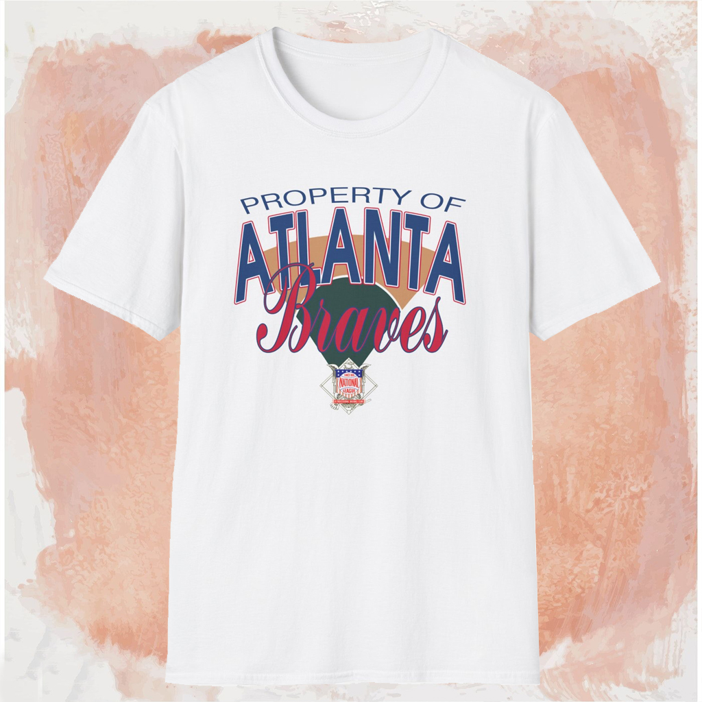 Property Of Atlanta Braves Shirt, Atlanta Braves fan shirt, Braves baseball apparel, MLB Braves gear, Braves vintage tee, baseball team shirt, Braves merchandise, Property Of shirt, Atlanta Braves clothing, sports fan apparel, Braves fan gear, baseball fan shirt, and Braves athletic shirt.