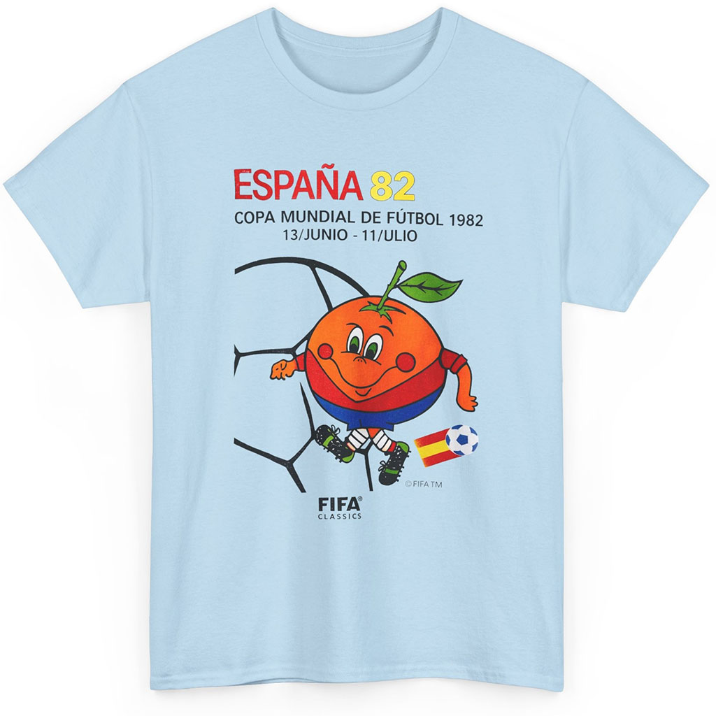 The Fifa World Cup 1982 Shirt hits with that classic early-80s tournament energy—clean, iconic, and rooted in football tradition. The graphic usually draws from the official Spain ’82 visuals, often featuring the unmistakable Naranjito mascot or bold emblem-style artwork that instantly places you in that era. It feels less chaotic than later designs, more structured—like a symbol rather than just a graphic. There’s a timeless quality to it, like something built to last beyond the tournament itself.
