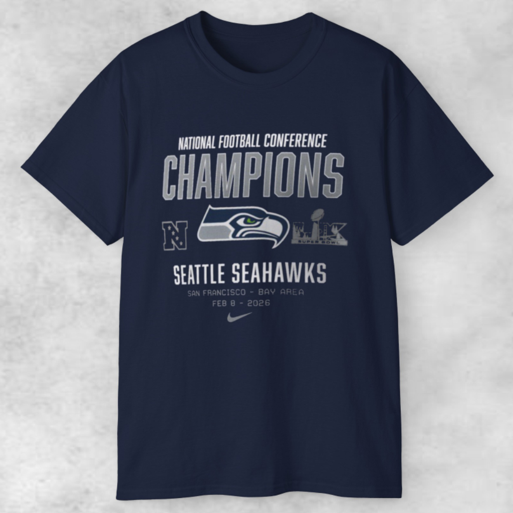 For loyal Seahawks supporters, the Shirt represents unity, resilience, and a season to remember. The strong visual hierarchy places the championship message front and center, reflecting the dominance and determination it took to reach the top of the NFC. This shirt connects fans across the nation, capturing the spirit of Team Nation and the excitement surrounding a championship run.
