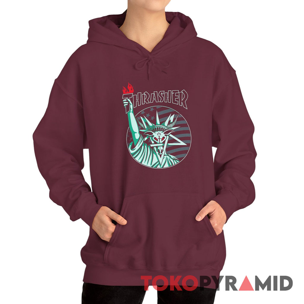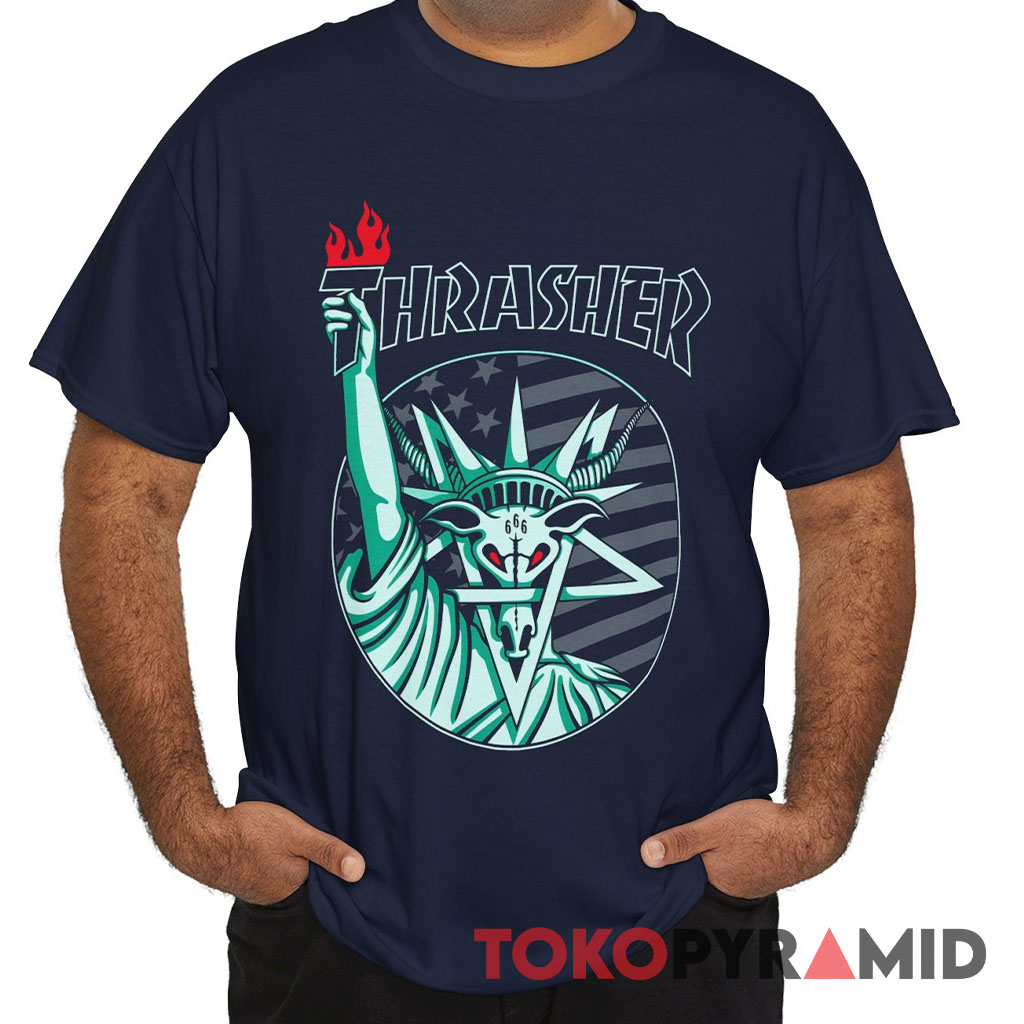 The fusion of the Thrasher logo and the Liberty Goat creates a visual narrative that’s sure to spark conversations and turn heads. This tee isn’t just a piece of clothing; it’s a statement. It captures the essence of individuality, creativity, and the daring attitude that defines the skateboarding world.