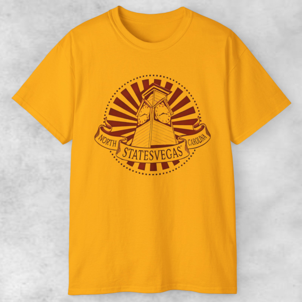 Inspired by the nickname “Statesvegas,” this design captures confidence, local flavor, and creative energy. The detailed clock tower adds a timeless feel, while the typography gives it a contemporary edge perfect for casual wear, fan collections, or streetwear outfits. Whether you’re a North Carolina local, a traveler with memories tied to the state, or simply a fan of bold graphic shirts, the Shirt connects lifestyle and location in a memorable way.