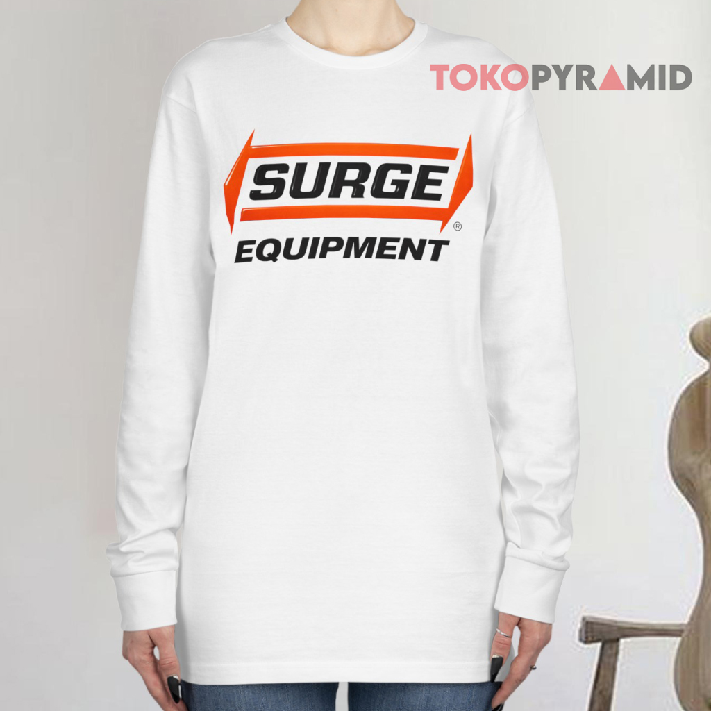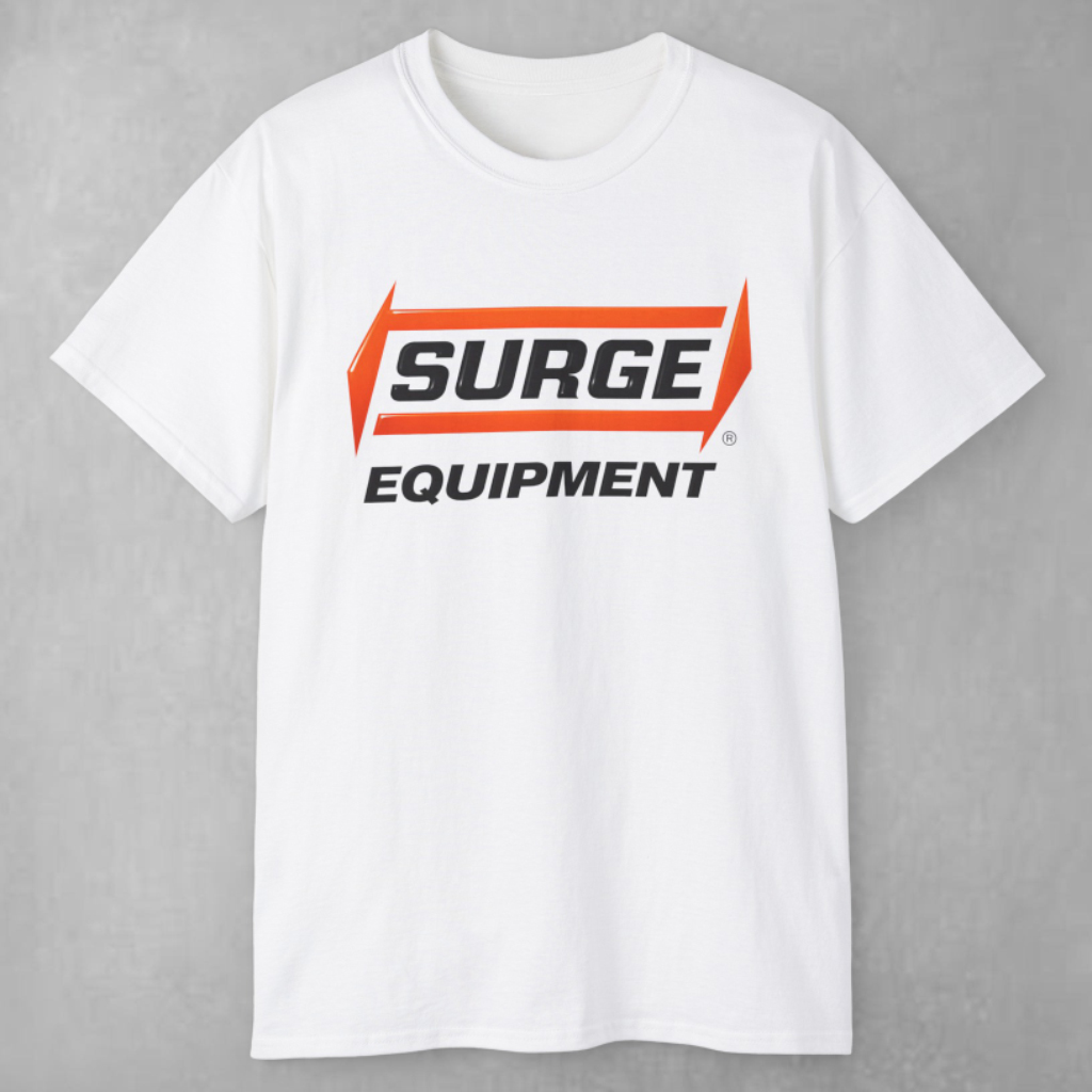 The Surge Equipment Logo Surge Milk Shirt is a bold statement piece designed for those who appreciate strength, motion, and modern industrial style. At the center of the design is the striking “SURGE EQUIPMENT” logo, where the word “SURGE” appears in black inside an orange lightning-inspired frame. This sharp visual instantly delivers a sense of power and speed, while the angled “EQUIPMENT” text beneath reinforces a dynamic, athletic, and hard-working identity that stands out at first glance.