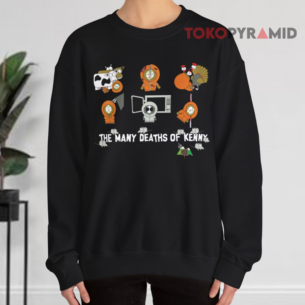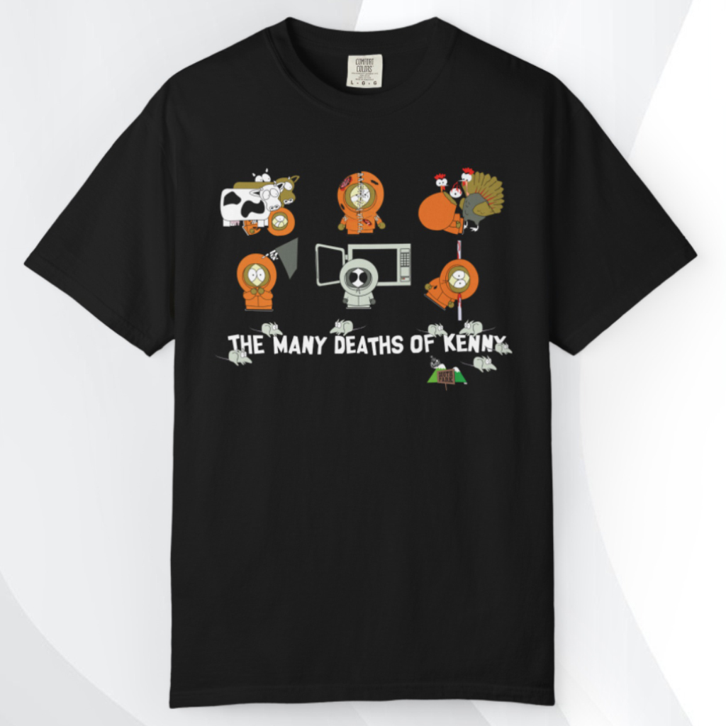 Perfect for longtime South Park enthusiasts, the layout captures chaotic energy and dark humor in a clean, wearable format. The detailed illustrations of Kenny’s many fates are sure to spark conversation and laughter wherever you go. Whether worn at comic conventions, casual hangouts, or as part of your retro pop culture collection, this shirt is a must-have tribute to one of the show’s most beloved—and unlucky—characters.
