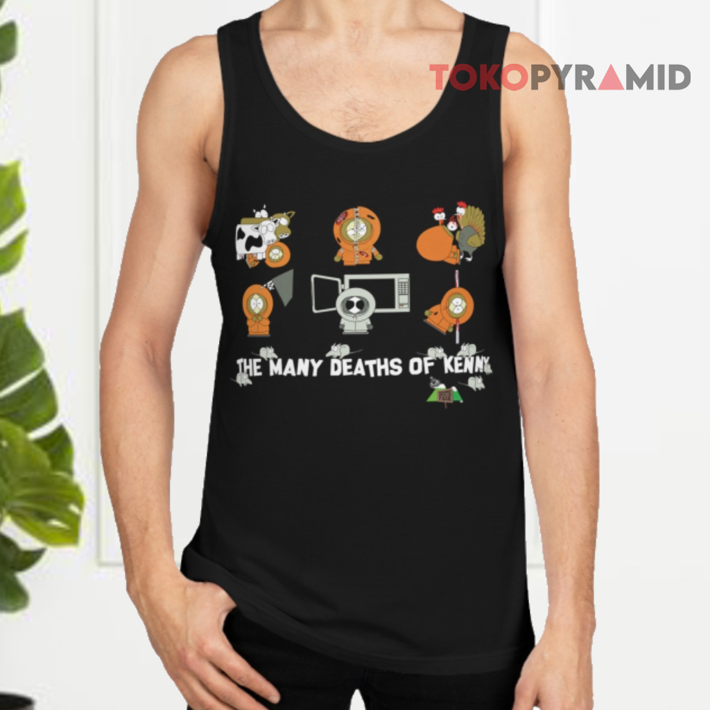 Step into the twisted humor of classic animation with the Vintage 1998 The Many Deaths Of Kenny South Park Shirt. This eye-catching design pays tribute to one of the most iconic running gags in television history—Kenny’s repeated, outrageous demises. Boldly printed across the top is the phrase “The Many Deaths Of Kenny”, instantly grabbing attention and setting the tone for what’s below.