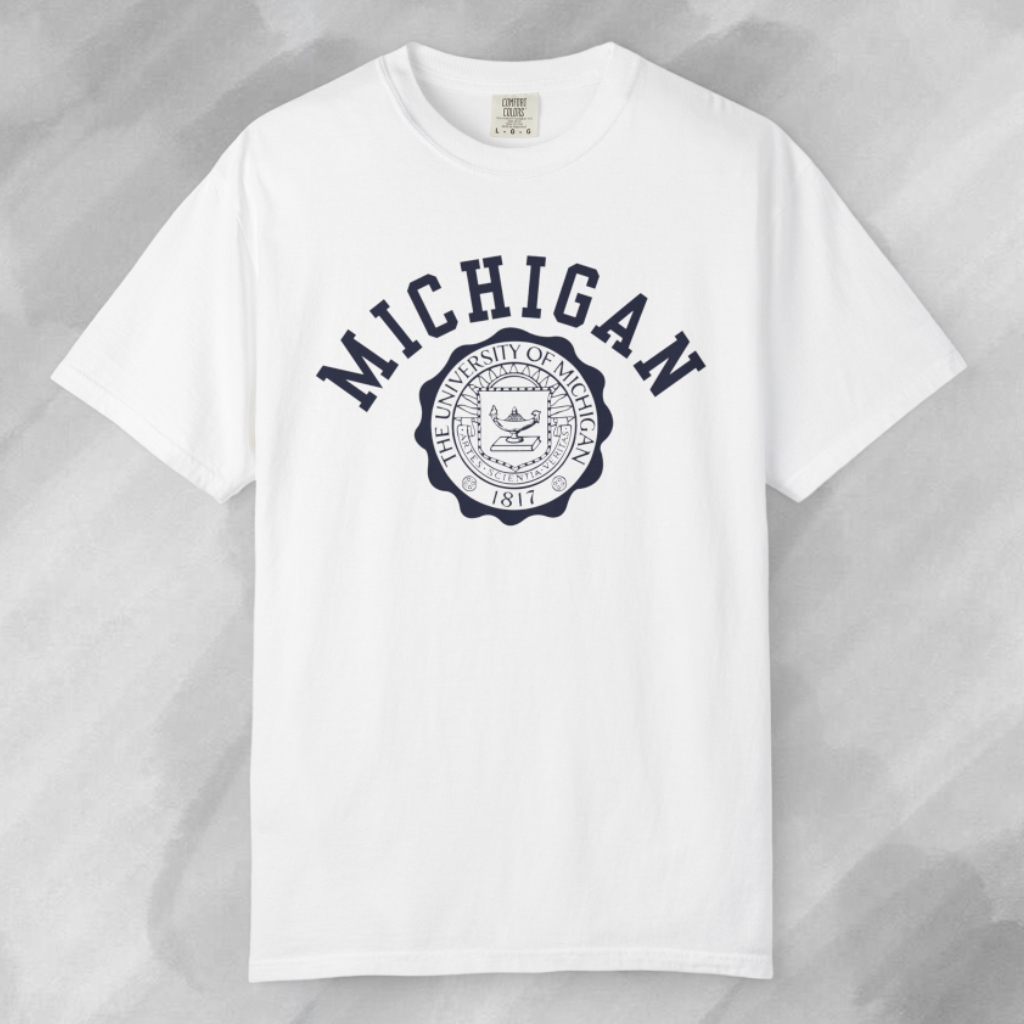 Show your school pride and celebrate a historic legacy with the The University Of Michigan 1817 Shirt. Featuring the bold University of Michigan logo with “Michigan” displayed proudly above, this shirt honors the founding year of one of the nation’s most prestigious universities. It’s a timeless design that connects you to over two centuries of academic and athletic tradition.