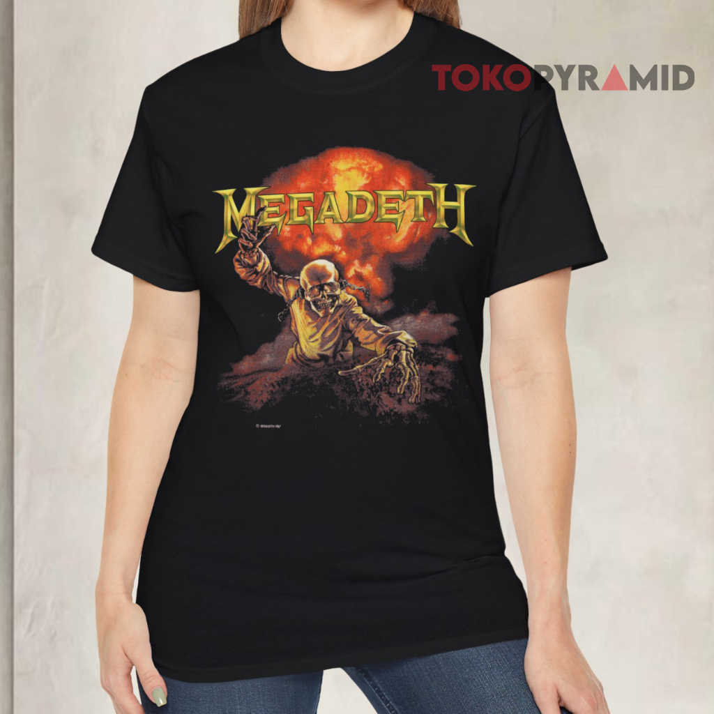 The prominent “Megadeth” lettering is a nod to the band’s signature branding, making a bold statement across the design. For fans of Megadeth, this Megadeth Nuclear Shirt is more than just clothing; it’s a piece of rock ‘n’ roll history, a tribute to the band’s artistic vision, and a wearable conversation starter.