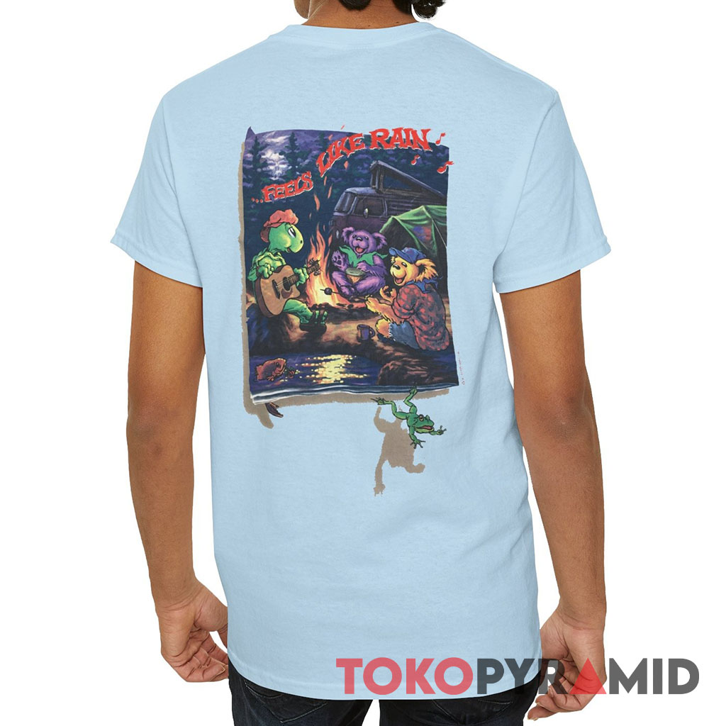 What sets this Grateful Dead LL Rain Summer 1996 shirt apart is its ability to convey a sense of three-dimensional depth. The artistry captures the interplay of light and shadow, giving life to the camping scene, fishing gear, and the frog’s playful leap. It’s as if the scenes leap from the fabric, inviting you to immerse yourself in the Grateful Dead’s world of music and adventure.