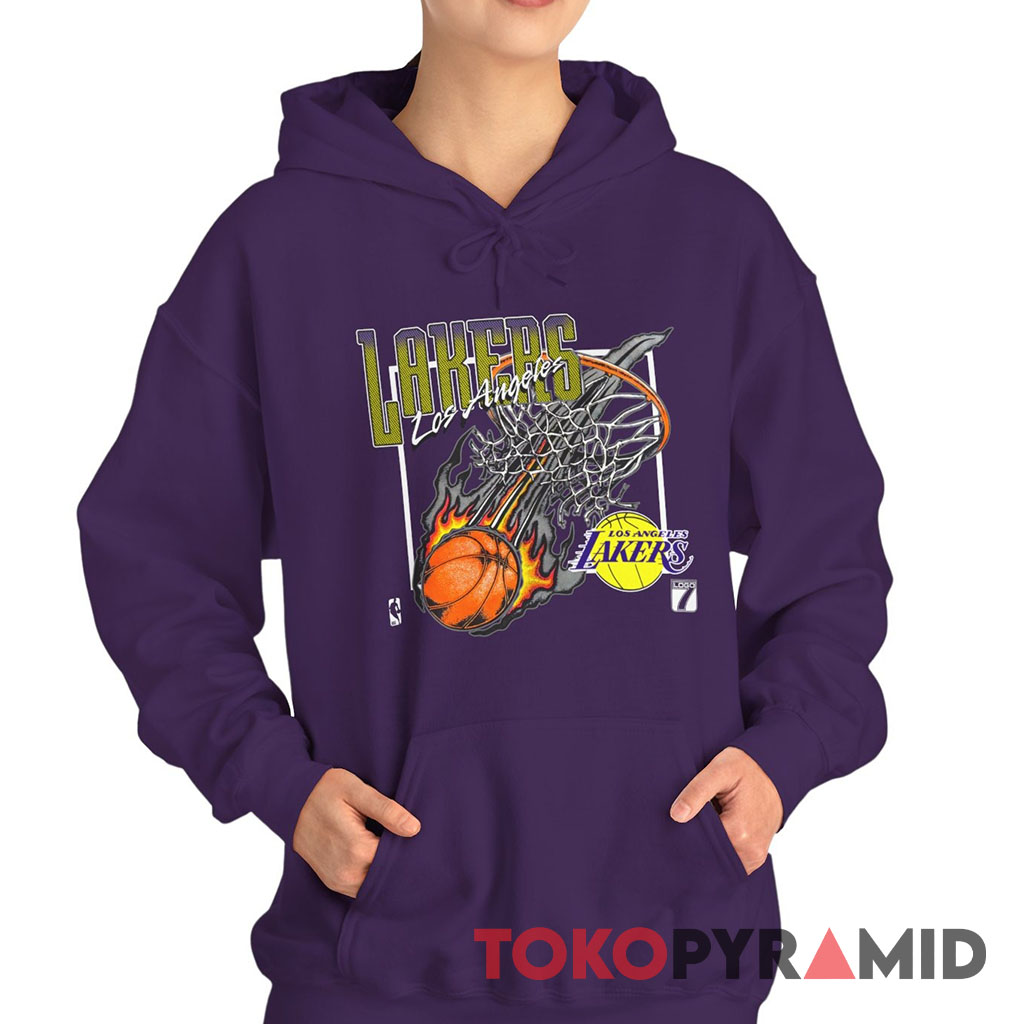 At the heart of this tee is the powerful imagery of a fireball, a symbol of energy, passion, and unyielding determination. The fireball design takes center stage, radiating intensity and embodying the fiery spirit that the Lakers are known for. It’s a visual representation of the team’s unstoppable drive to succeed, igniting the court with their skill and tenacity.