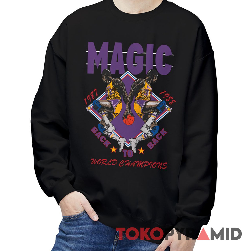 Have a look at the detailed information about Magic Johnson T-shirt 1987 1988 LA Lakers Back To Back World Champions below!