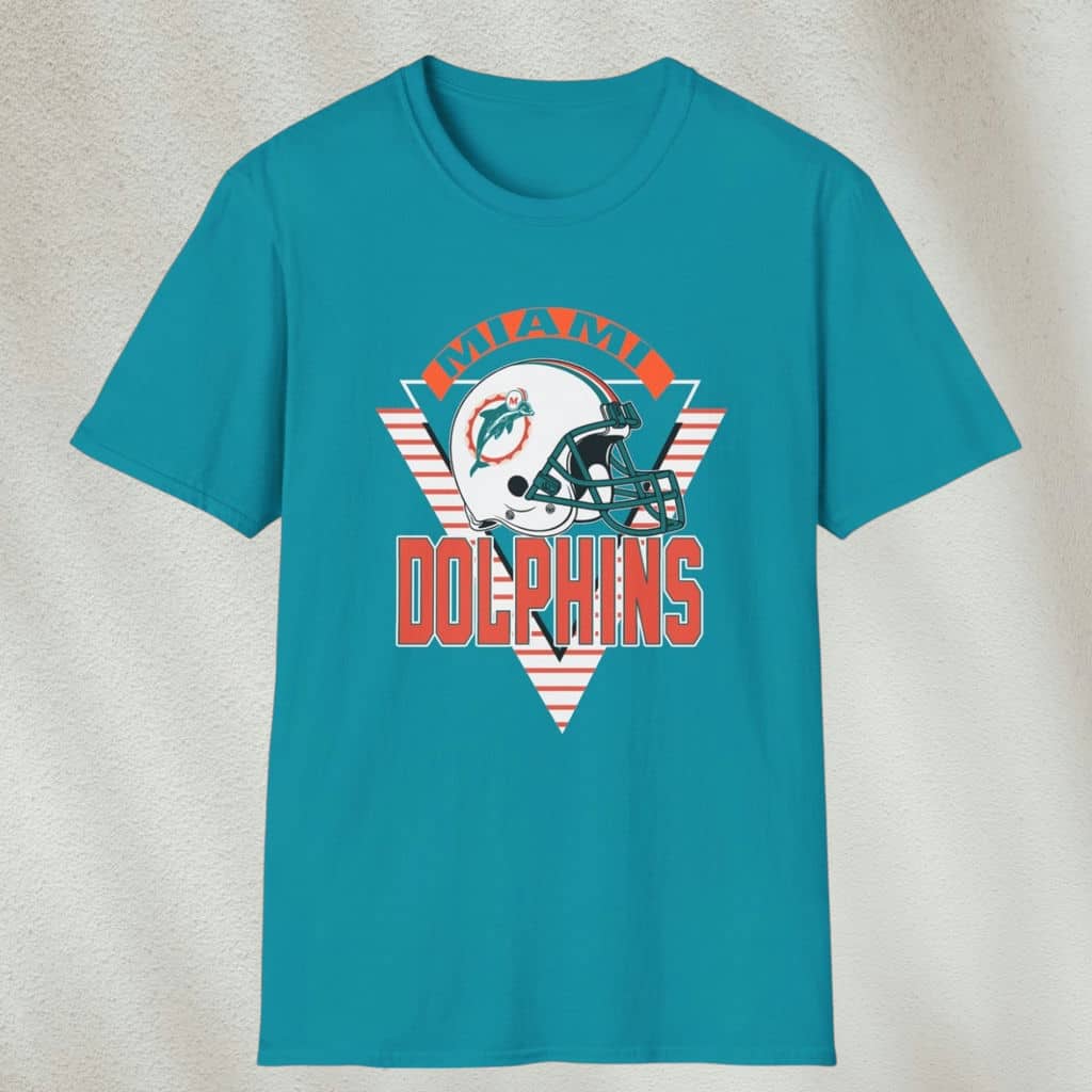 The Vintage Miami Dolphins Trench Shirt is more than just a fan item—it’s a tribute to the toughness and legacy of one of the NFL’s most respected franchises. The shirt’s artwork includes a fierce dolphin bursting through a patterned diamond frame filled with motion and action, perfectly evoking the team’s aggressive drive. It’s a shirt that feels like it belongs on the sidelines or in the heart of the game, worn by true diehard fans.