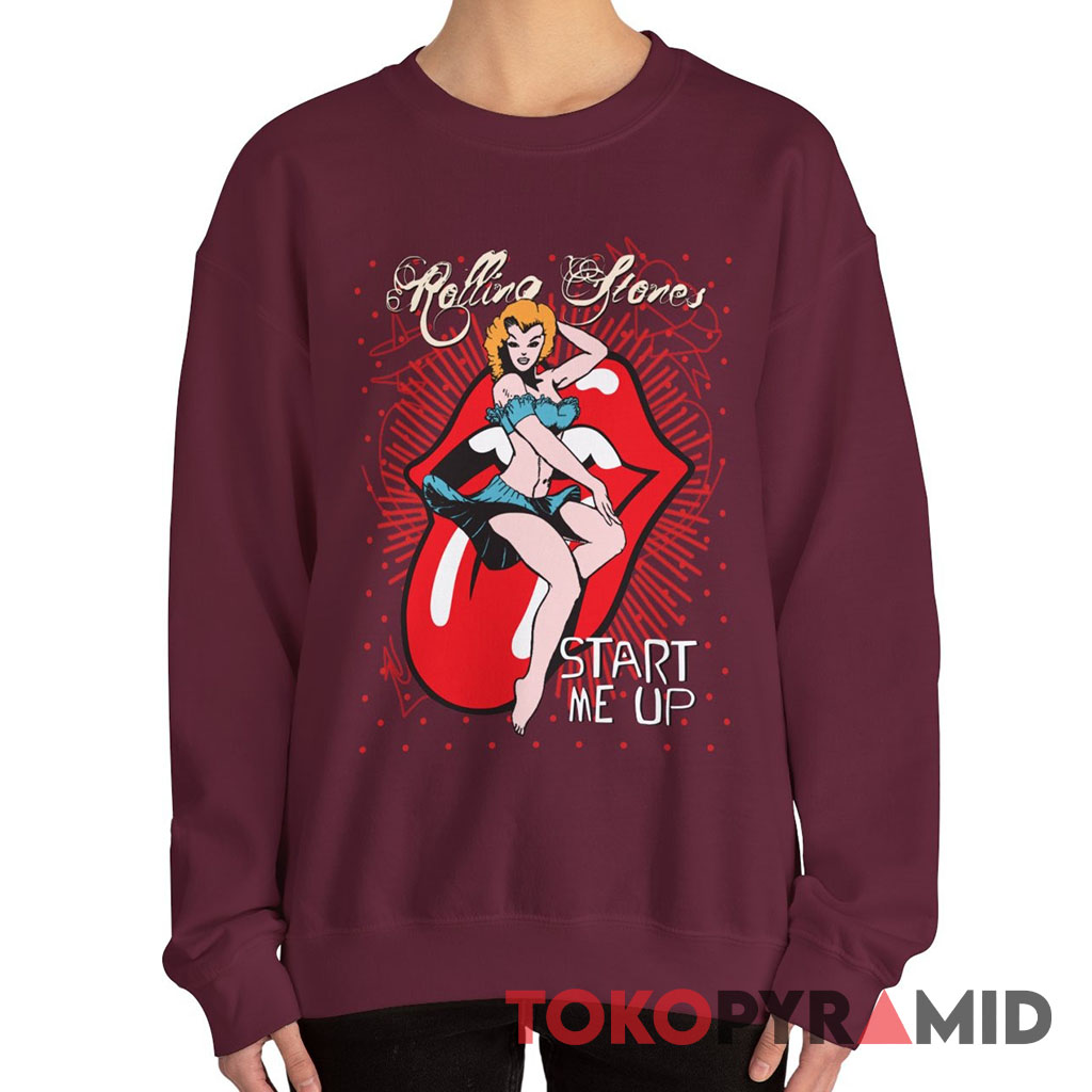 The combination of The Rolling Stones’ emblematic logo, the alluring imagery, and the reference to the timeless song “Start Me Up” creates a shirt that not only pays homage to the band’s musical legacy but also captures the essence of their rock ‘n’ roll spirit. Whether you’re a die-hard fan or simply appreciate legendary rock music, this Vintage Rolling Stones Start Me Up T-shirt is a stylish way to celebrate the band’s iconic status and their enduring impact on music history.