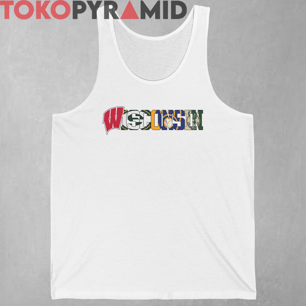 This Vintage Wisconsin Packers Brewers Badgers Shirt is a bold, unified tribute to the state’s most legendary teams—all on one classic tee. Perfect for die-hard Wisconsin sports fans, this design creatively spells out “WISCONSIN” using the iconic logos and colors of its beloved franchises.