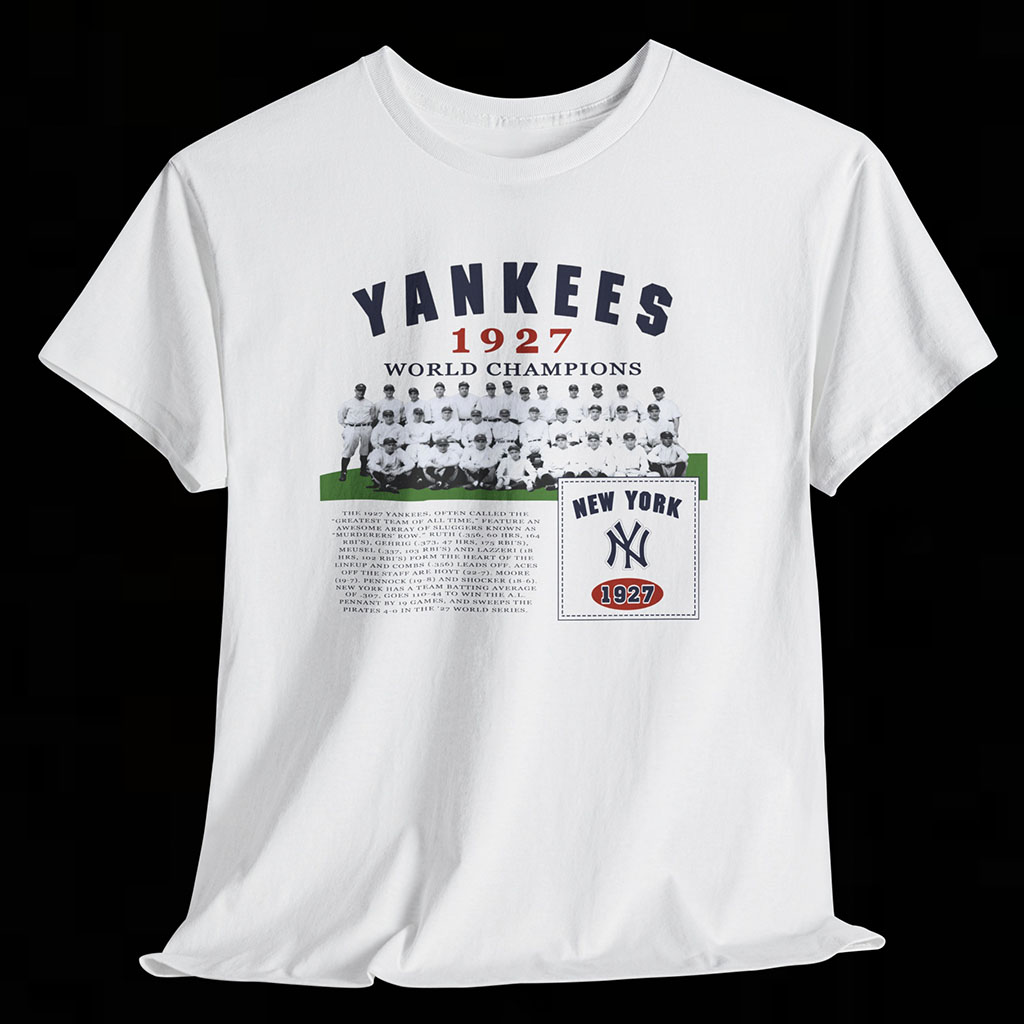 Wearing the New York Yankees 1927 World Champions Tee isn’t just about supporting a team; it’s about reliving the golden era of baseball. Embrace the spirit of the Yankees’ legacy and join us in honoring the unforgettable feats of the 1927 New York Yankees, a team that captivated the hearts of fans and etched their place in the annals of sports history.