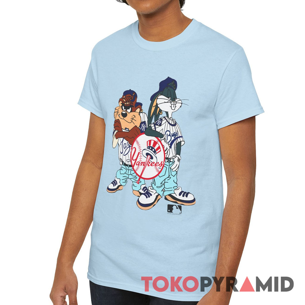 Join us in celebrating the magical crossover of the Yankees Taz Bugs Bunny T-shirt. Wear it with pride and let the playful spirit of Taz and Bugs Bunny add a touch of whimsy to your Yankees fandom.